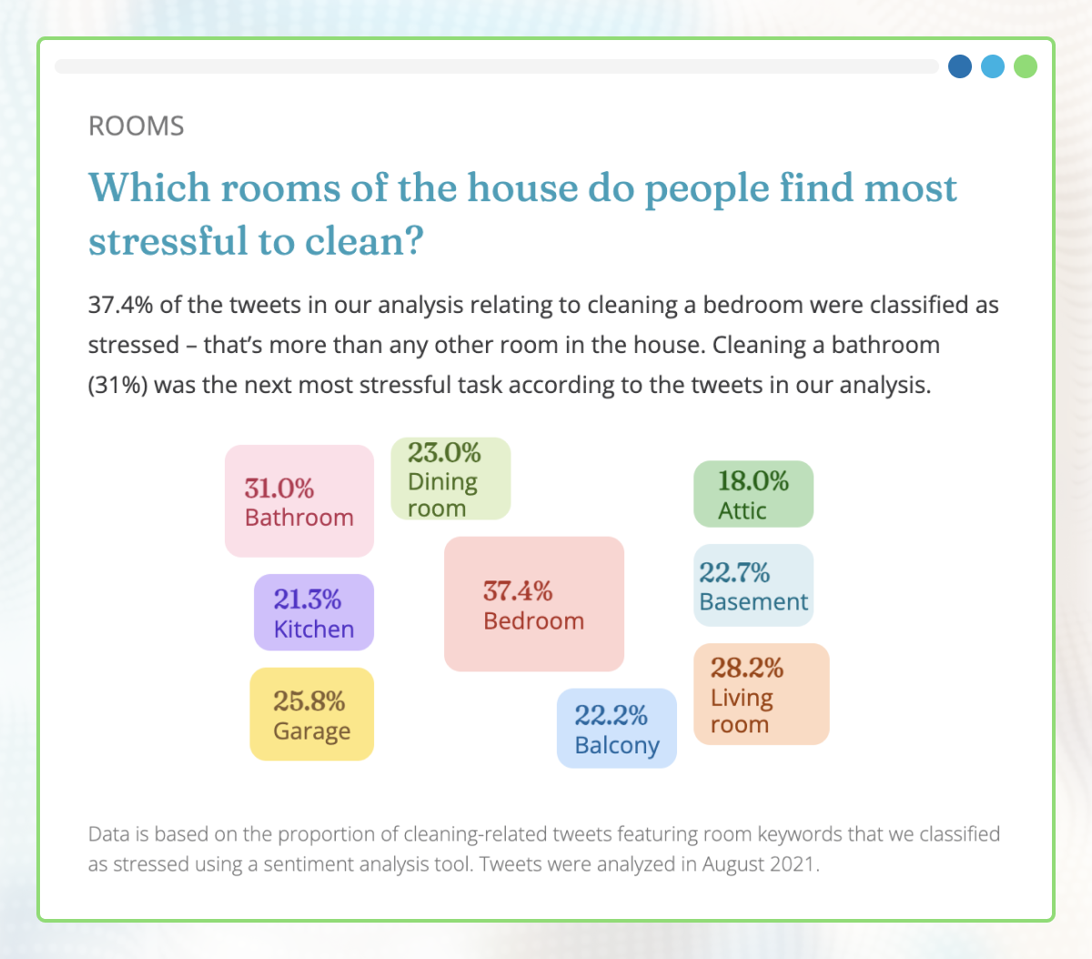 For example, a PR campaign from Cleanipedia used this type of analysis, they utilised “TensiStrength, a system that measures the stress levels in social media text to analyse hundreds of thousands of cleaning-related tweets posted around the world”. This created newsworthy stats such as, 67% of tweets complaining about cleaning came from men, compared to 33% from women.