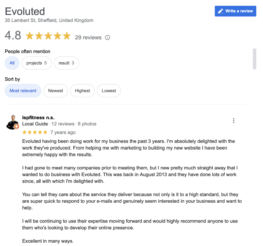 Similarly to encouraging reviews on platforms like Reviews.io and TrustPilot, you should also be actively seeking and managing customer reviews on your Google Business Profile. You should look to interact with your customers, thank positive reviewers, respond professionally to negative reviews and offer your side of a story if a user misrepresents a situation or has reviewed your business even though they have not used your services before (a common issue with Google Business Profiles).