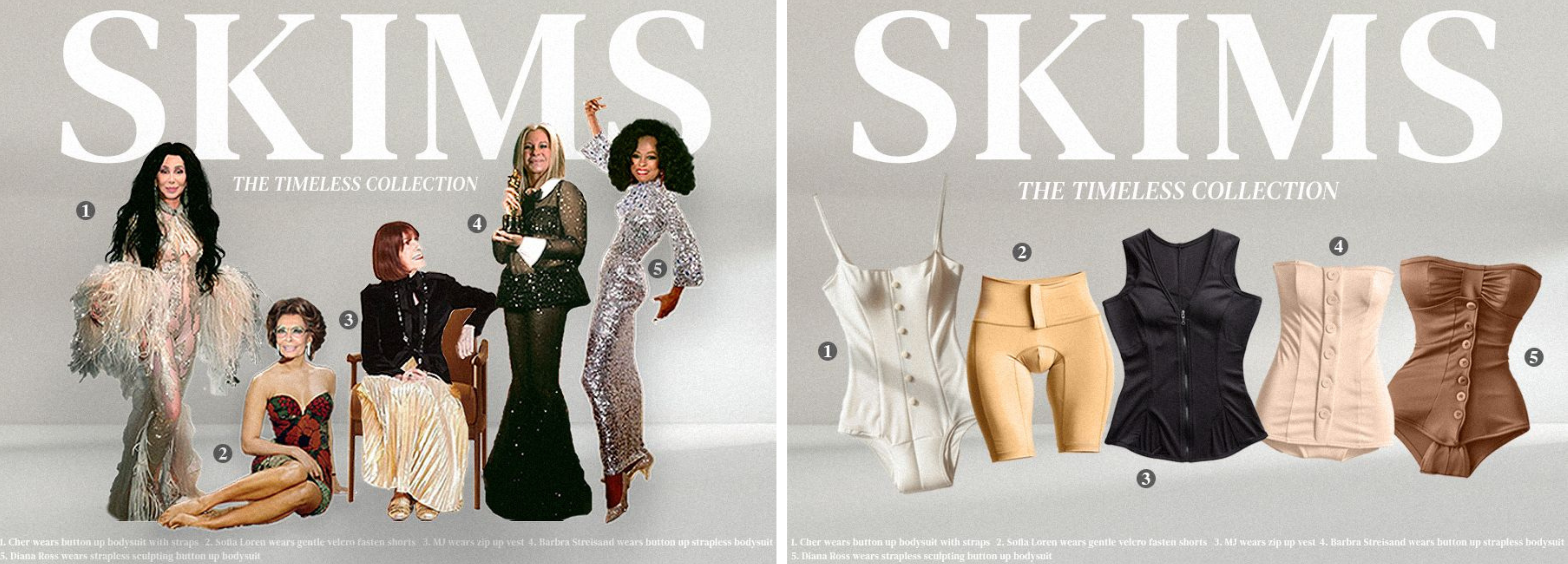 The campaign also includes interviews between Kim and each star, where they both reflect on their past inadequate shapewear experiences and discuss how SKIMS has revolutionised the shapewear industry, appealing to those who have had similarly disappointing experiences and convincing them to give SKIMS a try.