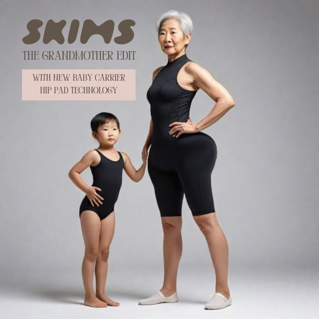 SKIMS’ latest release, The Grandmother Edit, now offers its mature customers instant access to Kim K’s iconic curves and the latest in baby-carrying technology.