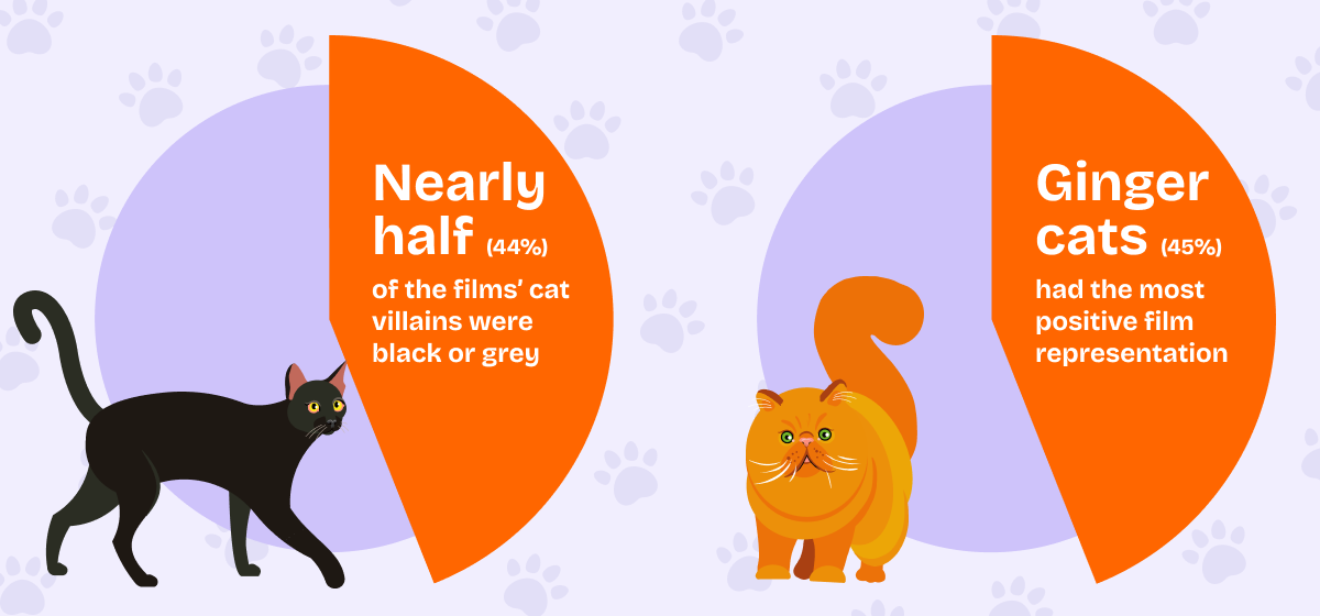 Of the 'villainous' cats in films, 44% of the felines donned darker-coloured fur, primarily black or grey. Among this group, nearly a third were black cats.