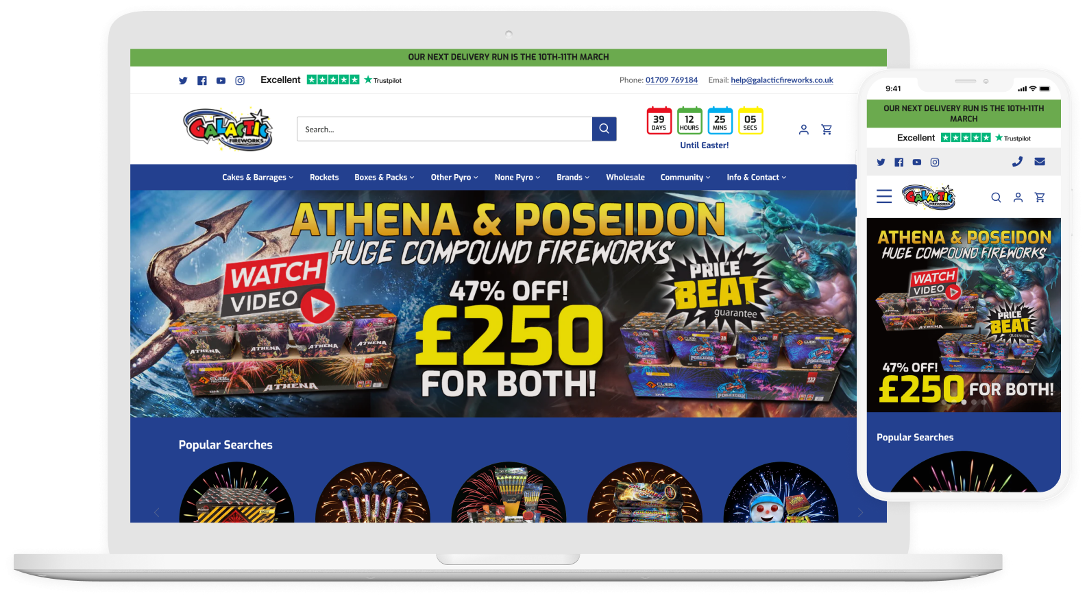 Shopify was the natural choice, the global platform was well placed to cope with the demands surges that Galactic Fireworks face.