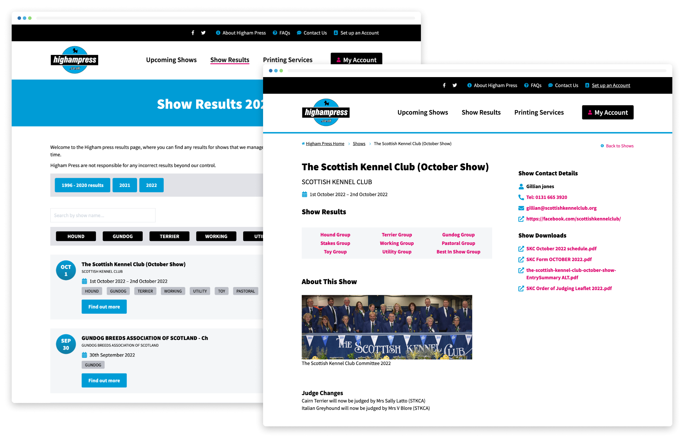 Higham Press has been providing end-to-end show service for dog shows from small open shows to major all-breed championships since 1945.