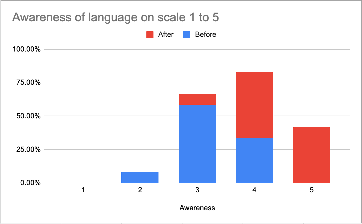The survey at the end of the initiative asked these two questions to help us find out if the initiative had a positive impact on language awareness: