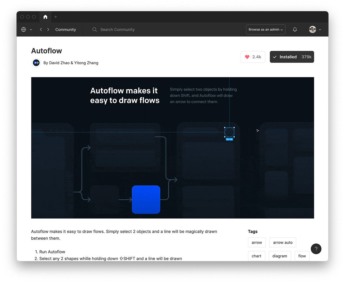 Autoflow makes it very easy to draw flows. This can be great for mocking up a sitemap, planning out a navigation structure, or creating a user flow diagram.
